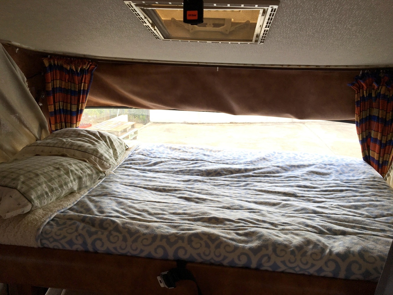Located in front of the vehicle, it is best suited to children or as a temporary bed. It is usually made up by lowering the dining table.