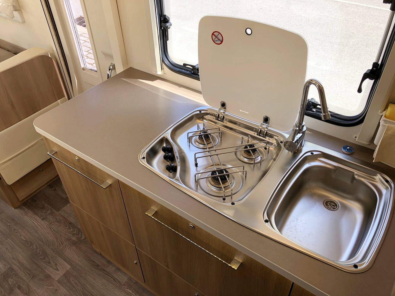 A Autocaravana para quem privilegia os espaços tem uma cama de casal espaçosa, beliche com 2 camas de solteiro e uma fabulosa sala de refeições. Também inclui mesa de 6 lugares, cadeiras e toldo para comer fora. A autocaravana também está equipada com um garagem traseira e um porta bicicletas. Para o entretenimento, existe um LED TV, com entrada HDMI e USB, assim como um leitor de DVD. Se houver necessidade, a sala de refeições converte-se rapidamente e permite dormida para mais 2 adultos e 1 criança! A cozinha totalmente equipada com uma pia, frigorífico com congelador e 3 bicos de fogão está convenientemente dimensionada para umas confortáveis férias em família ou com amigos. A casa de banho tem um lavatório, WC com função de SOG, bem como uma cabine de duche separada e de água quente.
