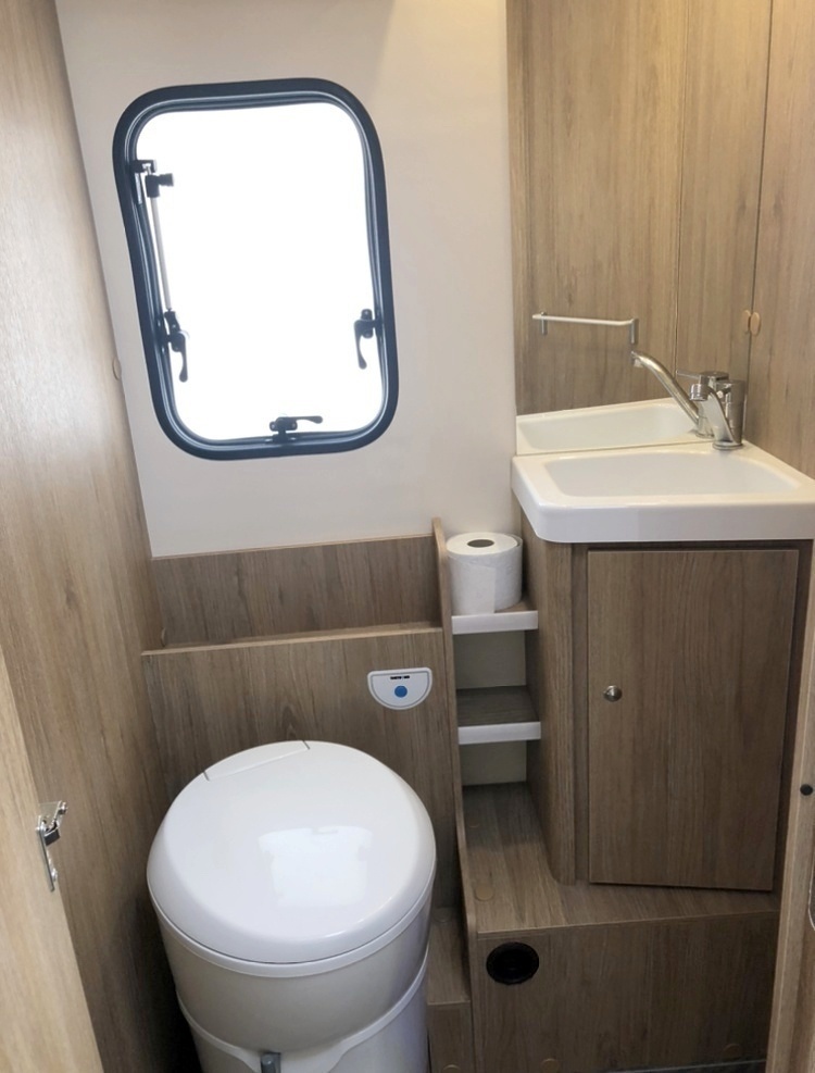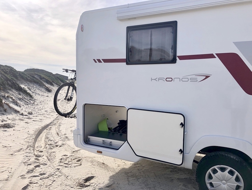 A Autocaravana para quem privilegia os espaços tem uma cama de casal espaçosa, outra cama dulpa de 1,34m e uma fabulosa sala de refeições. Também inclui mesa de 5 lugares, cadeiras e toldo para comer fora. A autocaravana também está equipada com um grande garagem traseira e um porta bicicletas. Para o entretenimento, existe um LED TV, com entrada HDMI e USB, assim como um leitor de DVD. A cozinha totalmente equipada com uma pia, frigorífico com congelador e 3 bicos de fogão está convenientemente dimensionada para umas confortáveis férias em família ou com amigos. A casa de banho tem um lavatório, WC com função de SOG, bem como uma cabine de duche separada e de água quente.