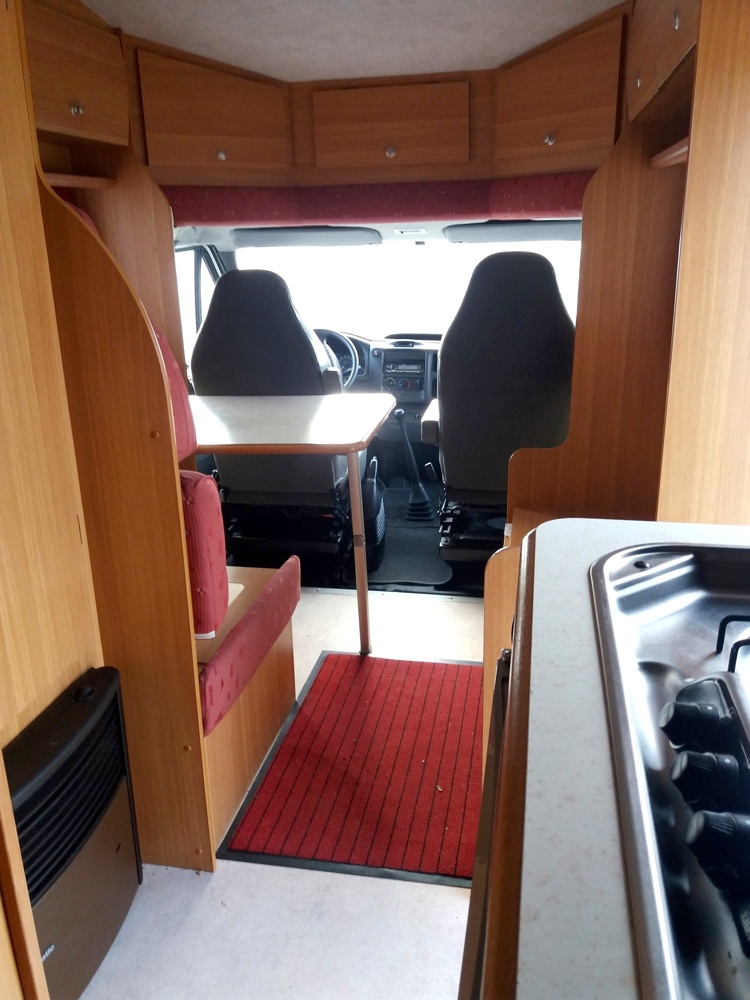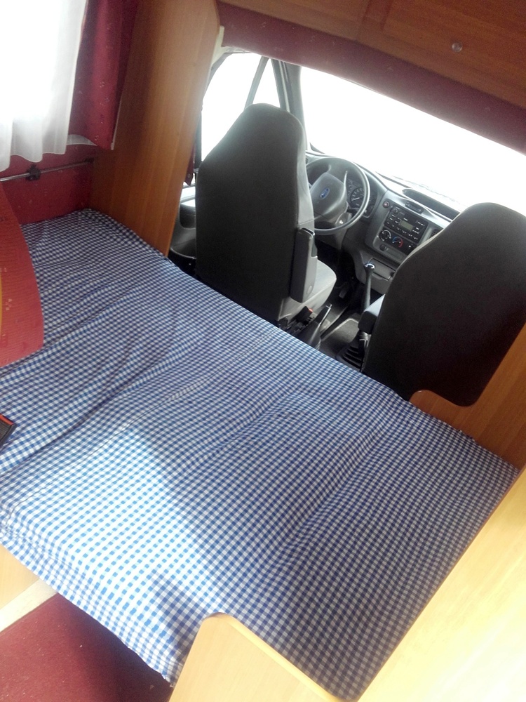 Located in front of the vehicle, it is best suited to children or as a temporary bed. It is usually made up by lowering the dining table.