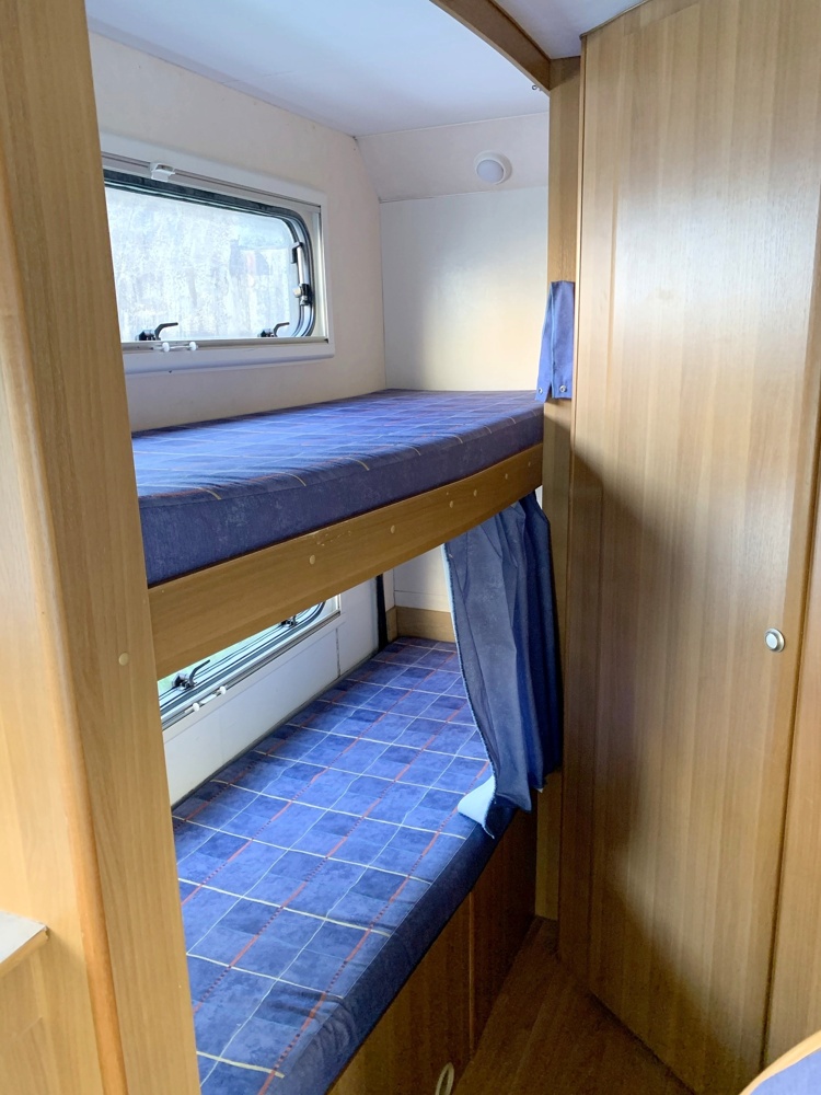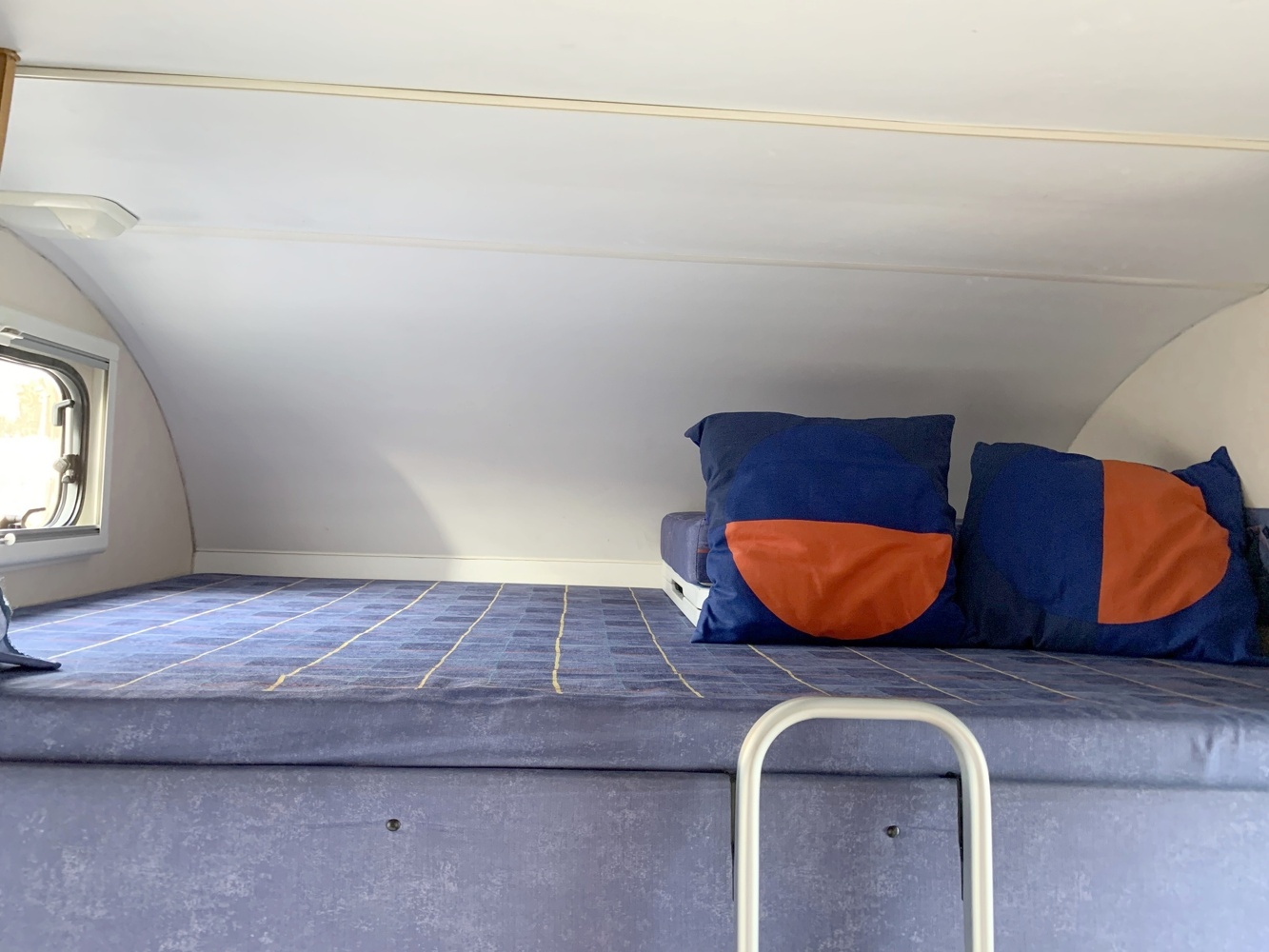 Located in the front area above the driving cab and accessible with a ladder. Very comfortable, this bed also allows for a bigger living space.