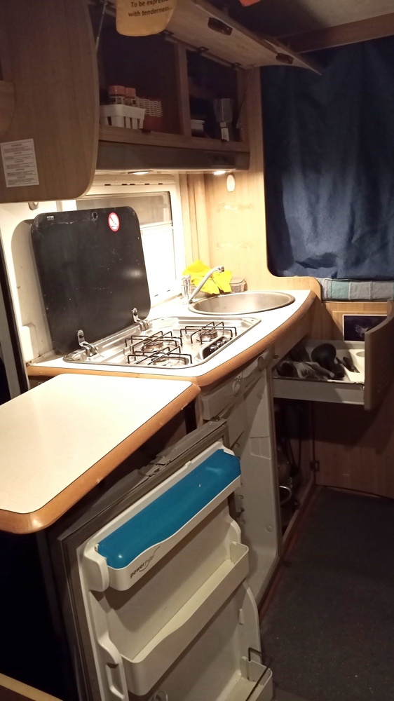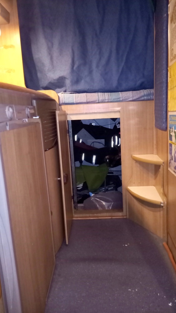 Located in front of the vehicle, it is best suited to children or as a temporary bed. It is usually made up by lowering the dining table.