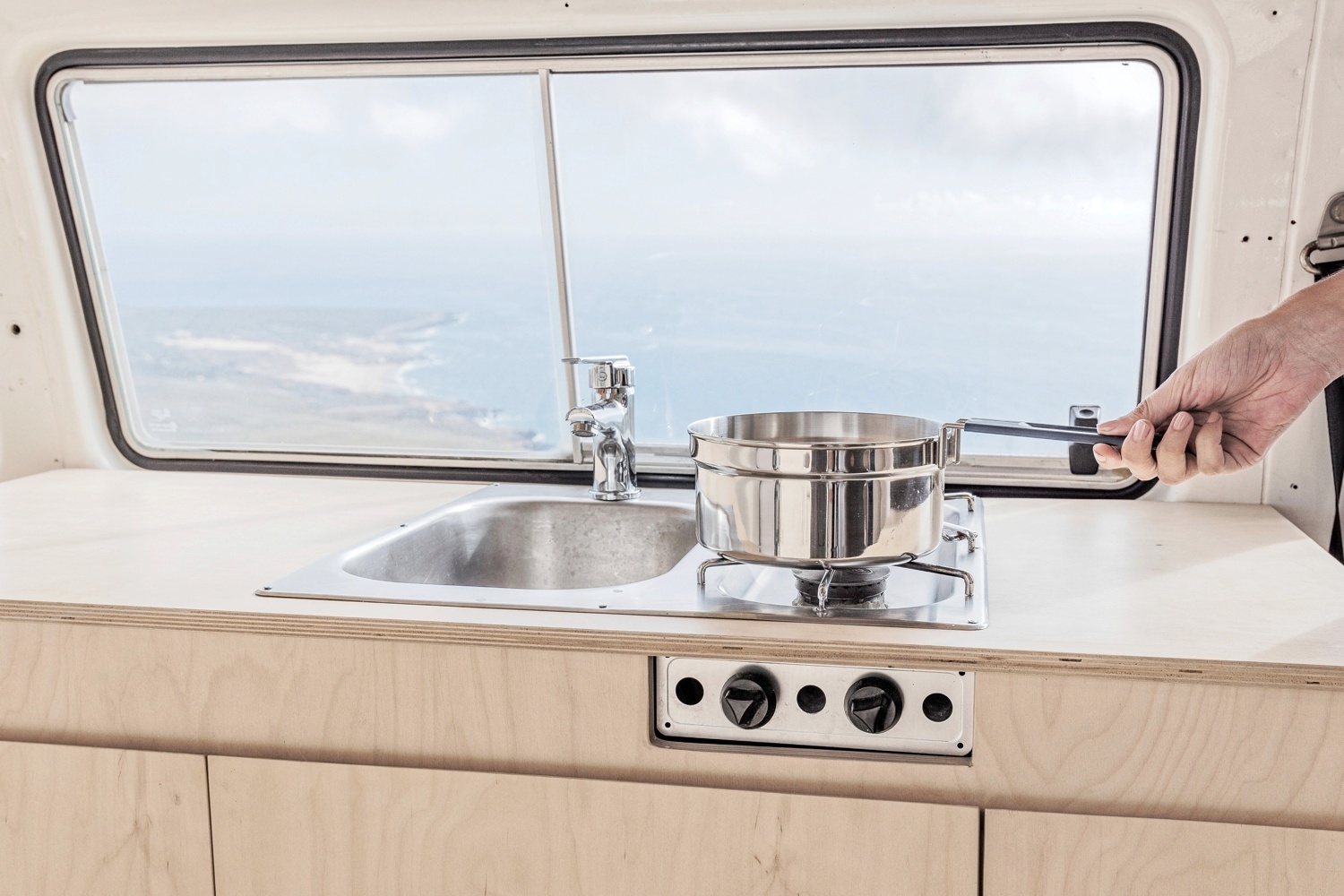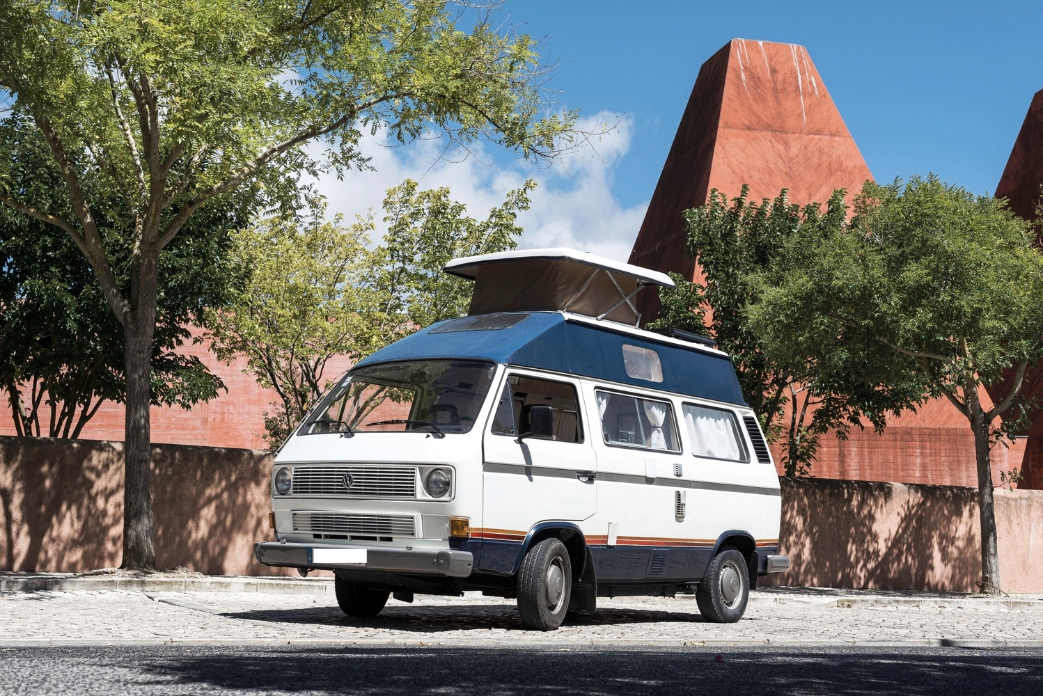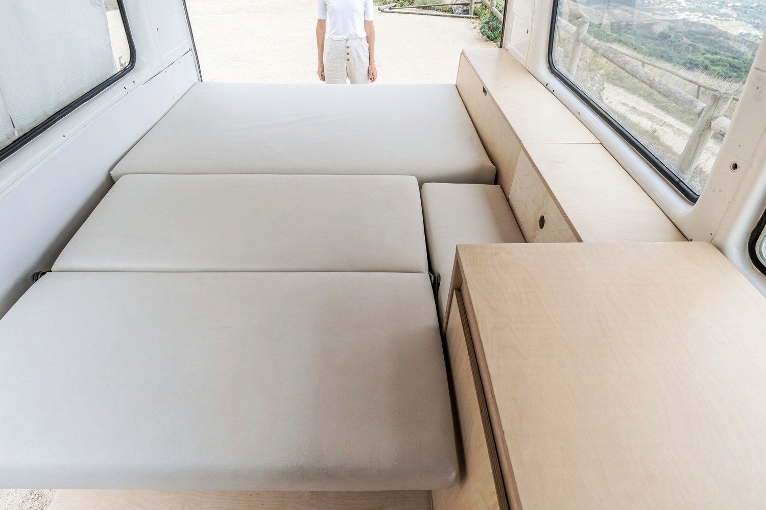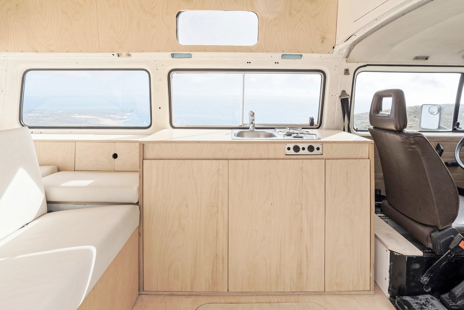 Clássica campervan com interiores remodelados contemporâneos, ideal para umas férias descontraídas.