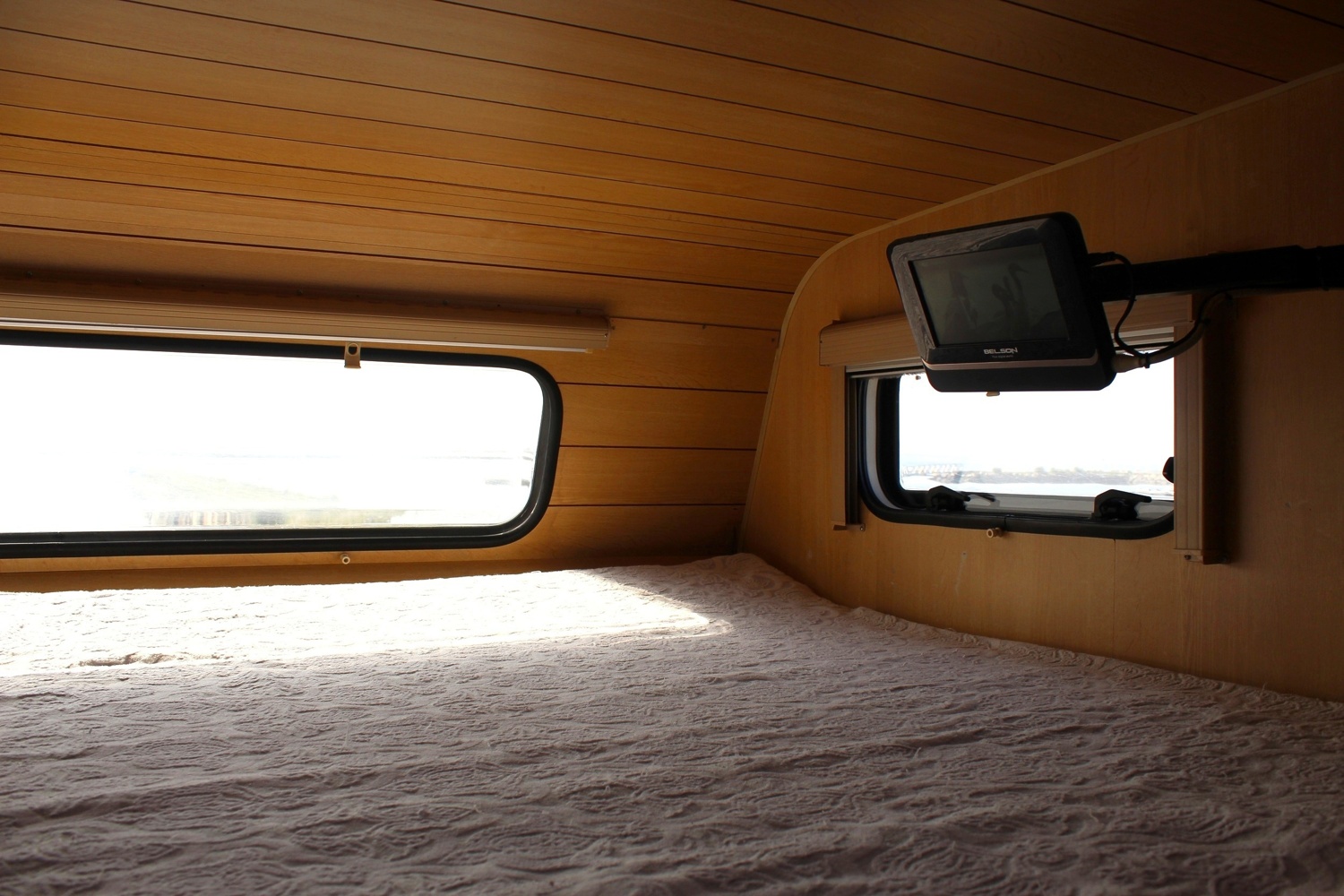 Located in front of the vehicle, it is best suited to children or as a temporary bed. It is usually made up by lowering the dining table.
